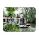 En konstkonstruktion av en man som styrde sin smalbåt längs kanalen. Kanalbåtar, som i Förenade kungariket kallas smalbåtar, användes ursprungligen för att transportera varor runt land. De används nu främst för fritid och lockar människor från hela världen att njuta av vår landsbygd. Dessa båtar ser mycket söt ut med sina ljusa färgader, traditionellt blåa, röda eller grönt. Blommor och slottsdesigner är också en del av de mer traditionella båtarna.