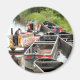 En fotografisk design av smalbåtar som försöker att flyga på kanalen.
