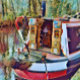 En söt konstdesign av en smalbåt förtöjd i en fredlig del av kanalen.