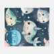En Narval Blå Stjärnor Tryck Fleecefilt har en fantasifull narvaldesign mot en bakgrund av blå stjärnor, vilket skapar en magisk och lekfull look. Tillverkad av mjuk, mysig fleece, ger denna filt värme och komfort samtidigt som den lägger till en charmig, stjärntema till ditt barns barnkammare.