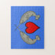 Två Narwhals med deras horns som dem emellan korsas, och röd hjärta