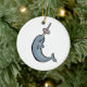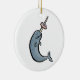 Här ser vi en tecknadnarwhale att leka med en rosa iced munk.