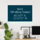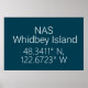 Latitud- och longitud-karta-koordinater för Amerikanska sjön Naval Luft Station Whidbey Island i delstaten Washington Roboto stil, vitt typsnitt på marinblå bakgrund.