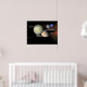 Planeterna visas i rätt ordning efter avstånd från Sol, rätt storlek och korrekt avstånd kroppsvikt. Kroppsstorleken är mycket överdriven i förhållande till avstånd i kroppen. Det går inte att visa Jupiter, Uranus och Neptune:s ringar. Eris, Haumea och Makemake visas inte i bilden på grund av sina mycket lutande kroppsdelar. Dvärgplaneten Ceres visas inte var för sig utan ligger i asteroiden bälte mellan Mars och Jupiter.
