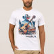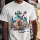 Som du hörde.. Nashville, TN är musikstad. Den här unika designen t-shirt har en cowboy med patriotkläder, Nashville Skyline, och folkgitarr i en mosaikplatta design.