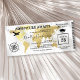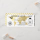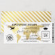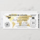 Inbjudan till examensfest med boardingpass med elegant guldpräglad världskarta, kompass, flygplan, examenshatt och en personlig textmall.