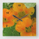 Den här väggklockan har vackra nasturtiumblommor av orange som är ätbara. Gör ett slående påstående och kommer att fuska upp vilket rum som helst!