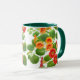 Målning av färgrika Nasturtiumblommavines på en ringerkaffemugg som är designad vid Carolyn McFann av studion för två spinnakatter.