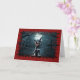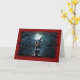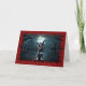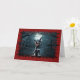 Detta unika Halloween-kort har en förträffligt söt skevt med en liten svart-vit hund, möjligen en Chihuahua, som förvandlats till en häftig liten vampyr. Hund har vassa fanger som är barkade i en lekfull snara, perfekt fångade Halloween-andan. Bakgrunden är en mörk, en härlig scen med ett fullt, blyfritt träd och en hemlig silhuett, som tillför den läskiga atmosfären. Kortet gränsar till taggigt rött kant som liknar sliten pappert och förstärker det oky vibe.