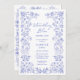 Det här blåa inbjudningskort för möhippan har vintage-inspirerade blommigtar för blå leksak för ett klassiskt och förfinat firande. Perfekt för teman för te party, trädgårdsduschar eller Fransk land anger den här utformningen tonen för en charmig och sofistikerad händelse. Anpassa enkelt texten så att du kan skryta med den.