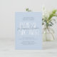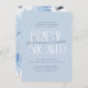 En dammig blå inbjudningskort för möhippan med fet typografi och handskrivet skript. Kortets framsida har en ljusblå bakgrund med "Möhippa" skriven i vit dekoinspirerad typografi. Bläddringen i namn är skriven i chicens moderna kalligrafi över den. Ovanför och nedanför visas händelseinformationen i elegantens formella serif-typografi. Korten återgår till ett vattenfärgsfärgat blommönster. Visa samlingen som är länkad på den här sidan om du vill ha matchande artiklar eller gå till vår butik om du vill ha fler inbjudningskort för möhippan-designer!