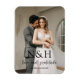 Modern magnet i bröllop med en enkel och minimal design med ditt monogram i ett fet teckensnitt tillsammans med "kärlek och tacksamhet" i ett handskriftsskript för elegant och namn nedan.