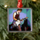 Abstrakt färg blockerade pojken och hans gitarr. I blått, till havs grönt och till flera färg.