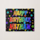 Denna spännande och livfulla pusselpussel med födelsedagstext har budskapet "GRATTIS PÅ FÖDELSEDAGEN, NATHAN", där tecknen har ett färgstarkt regnbågsspektrum som inspirerar till gradienten mönster, förutom roligtens stjärnor, mönster. Ett spännande pussel som detta kan vara ett roligt sätt att skicka födelsedagstävlingar till någon som heter Nathan. [~Z0000468]