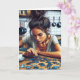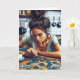 Här är ett roligt kort till en vän eller familjemedlem som älskar att göra pussel! Framsidan är en illustration av en kvinna som gör ett pussel. Den inre sidan har en gömd ordsökspussel att göra!