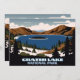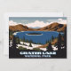 Visning ett vinterlandskap, bortsett från Crater Sjö i Crater Sjö nationalpark i Oregon. Det här dubbla-sidiga kortet kan användas som ett bord-nummertecken för ett bröllop.