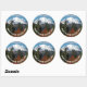 Rundklistermärken med en scenbild av snö-socklade berget Rainier, betraktad från nationalparken i delstaten Washington. Använda på alla dina favoriter sak, t.ex. kuvert, kort, skrotböcker, bindemedel, anteckningsböcker osv. Välj storlek dekal.