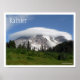 Fotografi av berget Rainier med en ring av moln som skymmer dess topp. Anpassade, "Rainier", utskrivet överst till lämnat. Fotografi av NPS.