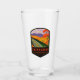 Shenandoah National ParkA vintage resor badge designen av Skyline Drive vid Shenandoah National Park med Blue Ridge-bergen under nedgången i Virginia, Förenade Stater.