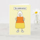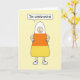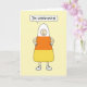 En tecknad bild av en person i en jättestor godisdräkt, mot en citronfärgad bakgrund.