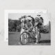 Gamla 1930-talets foto av Native American-pojkar i ceremoniella kostymer med headresser, med cykel, 1938 eller 1939.