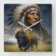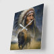 Native American Chief with Charging Buffalo Fyrkantig Klocka