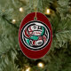 Native American Red Black Art Otter Salmon Julgransprydnad Keramik