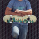 Snygg skateboard-design för att fira den inhemska amerikanska dagen. Den här designen har en mängd olika tält på grönt backe.