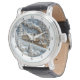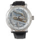 A beautifully crafted train emerges from a richly textured landscape, surrounded by intricately carved trees and dramatic clouds.