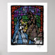 Nativitet. Jesus födelse ritades i ett stil som påminner om ett nedfläckad glasfönster. Mary och Joseph adore, deras nyfödda baby med Betlehem i bakgrunden.