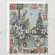 This detailed design features a richly layered, torn-paper patchwork border in vintage reds, greens, and creams, including checks, florals, and damask patterns. The soft, speckled center provides a beautiful canvas for the key elements.