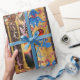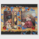 Färgrik magical atmosfär av julen av den tyska målare Matthias Grunewald, specificerar från understöder statligt av uttrycksfull och intensiv stilen för den Isenheim altarpiecen, av den sena medeltida centralen - europékonst in i det 16th århundradet. Olja på trä. Eleganten, klassikern, ljusa och god jul planlägger på parchment med antika Florentine blom- motiv, skins röda gemstones för ruby 3D.