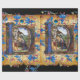"Joy ,Peace,Kärlek" Elegant,klassisk, stark och god jul-design på ett parlament med antika motiv för Florentine-blommigt och en blankt 3D blå sapphire-gemstone från den italienska medeltida miniatyrismen i en antifonär av Francesco Di Giorgio Martini