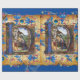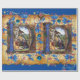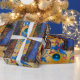 "Joy ,Peace,Kärlek" Elegant,klassisk, stark och god jul-design på ett parlament med antika motiv för Florentine-blommigt och en blankt 3D blå sapphire-gemstone från den italienska medeltida miniatyrismen i en antifonär av Francesco Di Giorgio Martini