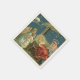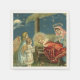 Lovely vintage illustration of baby Jesus born in Bethlehem, surrounded by his mother Mary and two little angel praying.