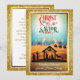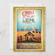 Celebrate the true spirit of the season with this elegant and modern Nativity scene Christmas card. The design features a serene silhouette Nativity with Mary, Joseph, and baby Jesus in the manger, surrounded by animals and shepherds. The Three Wise Men on camels are seen approaching under a guiding star, while angels watch over the scene.