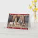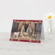 Red nativity scene Christian Christmas card. Easily personalize this religious holiday card with your family name and text.