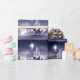 Kristen julkrubba för jul med bebiset Jesus i mangeren i silhouette, tre kloka manar eller kungar och stjärna av Bethlehem med staden av Bethlehem i avståndet