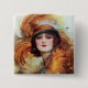 Drag av gröntögonen målade vid konstnären W.H. Barribal, tidiga 1900s. Konst för vintageklaffmode publicerade vid Puck Publishing Korporation. Illustrationen visar ett i halvfigur porträtt av en härlig kvinna med gröna ögon som ha på sig fjäderhatten, och boaen.
