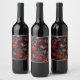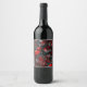 Natt av lysande röda vissnade löv som fallit på as vinflaska etikett