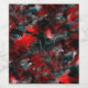 Grov teckning från grafisk konst där rött lider av en svag gradient som ger en uppfattning om något vridet, särskilt när det kontrasterar med vitt grått och andra delar som krockar med svarta fläckar som ger en uppfattning som påminner om skugga, vilket får det att se ut som om delar av det 'röda bladet' svävar eller är på avstånd från marken.