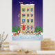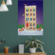 Skicka dina semesterhälsningar med den här levande contemporaryn av jultomtens hem i Nordpolen. Han förbereder sig för sin julresa med hjälp av renar, älvar och en katt.