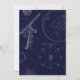 Djupa, rika blå nyanser framhäver denna fantasifulla festinbjudan, lämplig för en stjärnskådningfest, astronomiträff eller temaföddelsedagsfest. Framsidan visar en illustration av natthimlen strax efter skymning när stjärnorna börjar synas. Skuggade tallar och ett teleskop riktat uppåt fullbordar designen. I himlen finns en konstnärlig gestaltning av orden "Star Party" ("Stjärnfest") sammansatt av många små tindrande stjärnor. Denna gestaltning kan tas bort om du vill ersätta den med text som passar just din tillställning. All annan text kan anpassas helt med hjälp av de lättanvända mallar som medföljer. Baksidan är tryckt i djupblått och har ett mönster bestående av antika astronomidiagram och