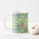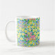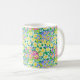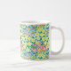 En mycket nätt kaffemugg, med ett mönster av rosa-, gult- och blåttprimroses, från en handpainted akvarelldesign av Judy Adamson.