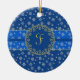 Natt och snöflingor med monogram julgransprydnad keramik