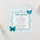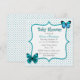 Snyggten kvadrerar formad baby showerinbjudan med turkospolka dots, på en vitbakgrund. Diagram av en turkos- och vitpolka pricker dekorativt inramat textområde, i mittet, har nätt turkos, och blåttfjärilar på två tränga någon. Färgrik grafisk text, läser upptill, baby shower. Personifiera den beställnings- texten för att passa din duschhändelse. Älskvärd inbjudan denvara ska kärleken.