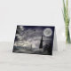 Natt skog måne ensam varg. Vacker skog på natten med fullmåne. Ensam varg ylar mot den ljusa månen. Ensam varg. Inte en hund, inte en prärievarg utan en ung hanvarg. Tom insida, anpassa dina färger och stil. Underbart födelsedags- eller när som helst kort eller för dem som älskar vargen, eller som en tematisk present eller fest som Halloween.