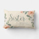 Denna snyggt kudder särdrag en mjuk persikabakgrund med subtil vitpolka dots, och moderiktiga persika- och vitblommor med raddagrönt lämnar. Ord "syster" visas i älskvärt handskrivet skrivar, och det finns ett ställe som ska personifieras med ditt namn.