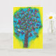 Ett nätt träd med löv och ljust färgade fåglar. Bakgrunden är himmelblått och gult. Insidan av kortet som en avbilda av en röd fågel mot en gul bakgrund som är ljus nog att skriva en. Ett underbart kort som ska ges från en grupp människor.