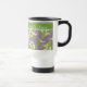 En nätt non-spill travel mug som ska personifieras, med ett art nouveaustilmönster av liljekonvaljer på en Mauve bakgrund; från det Posh & Painterly "för kärleken av lilja samling.
